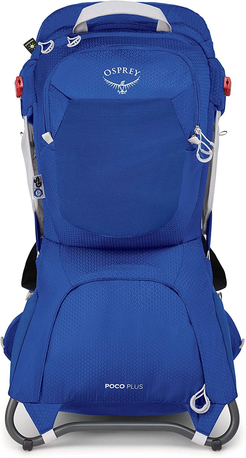 Whether it’s a big or a small adventure the Poco child carrier nurtures discovery. Carrying your kid on your back in a supportive, safe and comfortable carriers allows you to experience the same things in nature while giving you freedom and mobility to adventure together. Kid specific features include a buil-in deployable sunshade, removable and washable drool pad, and a comfortable harness with adjustable and removable foot stirrups. For the parents, there is a comfortable AirSpeed suspension for carryability and ventilation, zipper slash pocket and lower zippered compartment for stowing extra snacks and layers. There is also torso adjustability up to 6″ so each parent can take a turn carrying your kid up the hill. The Poco Plus also features zippered hipbelt pockets and a Fit-on-the-Fly hipbelt for a wider fit range. The Poco also carries an Osprey 7 year All Mighty Guarantee. Osprey Child Safety Products LLC will repair any damage or defect for any reason free of charge during the first seven years from the date of manufacture. If we are unable to perform a functional repair on your Poco Child Carrier or Poco Accessory, we will happily replace it.